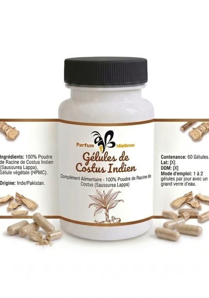 Gélules de Costus Indien Pur (Qust al-Hindi) – Soutien Immunitaire & Respiratoire | Parfum Mielleux
