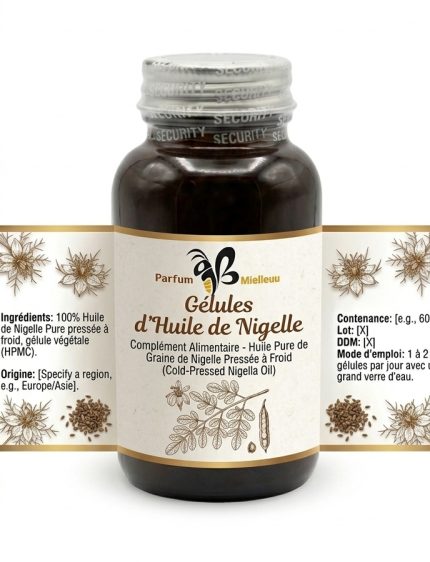 Gélules d’Huile de Nigelle Pure – Pression à Froid & Immunité Renforcée | Parfum Mielleux
