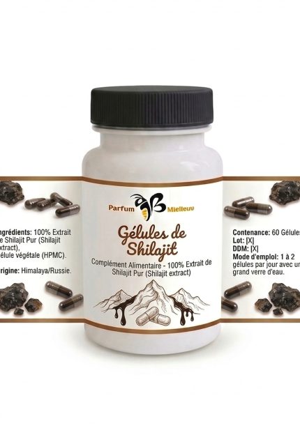 Gélules de Shilajit Pur de l’Himalaya – Riche en Acide Fulvique & Minéraux | Parfum Mielleux