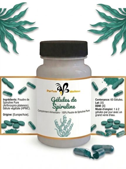 Gélules de Spiruline Pure – Super-aliment Riche en Fer & Protéines | Parfum Mielleux