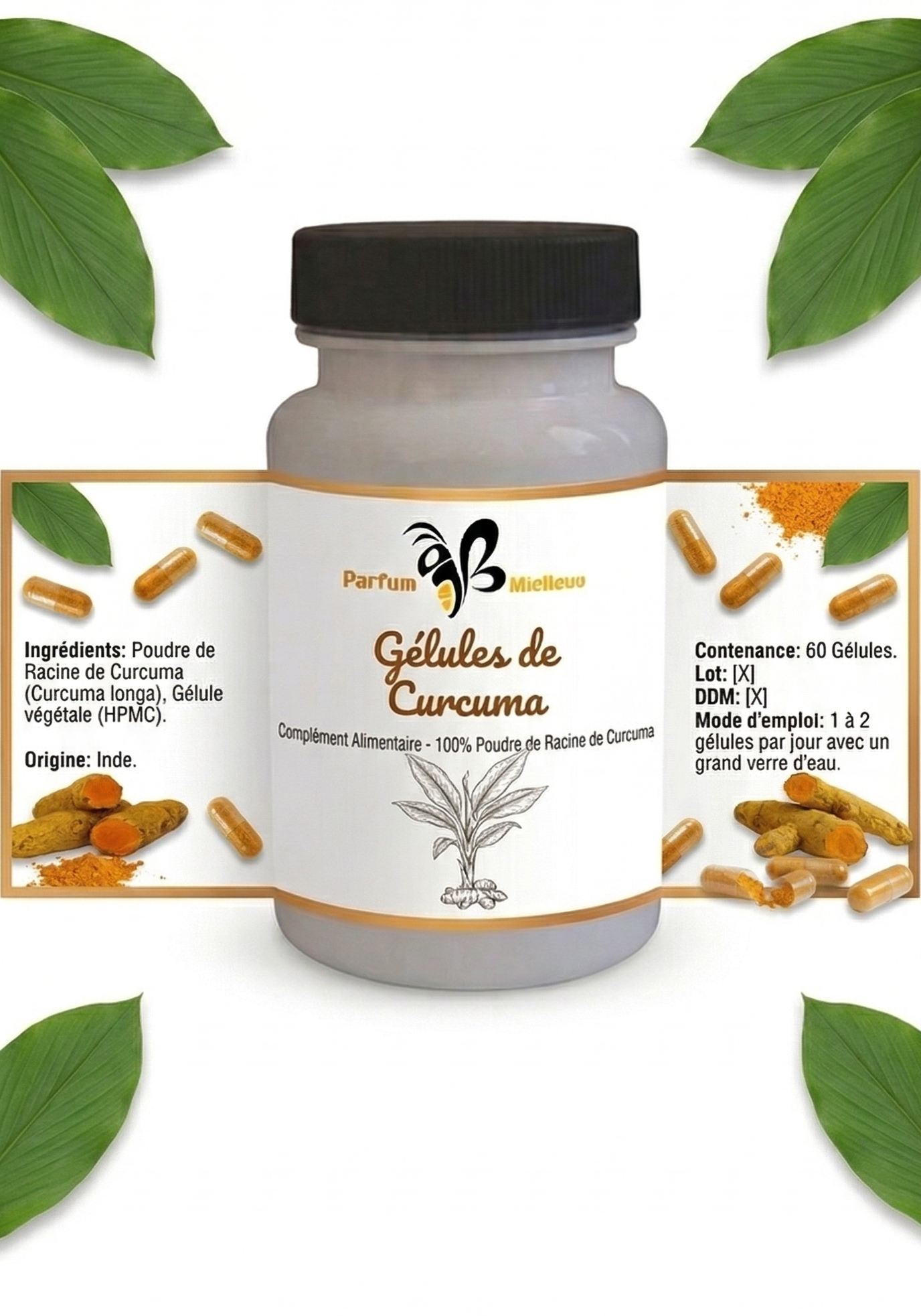 Le curcuma, surnommé l' »Or des Indes », est une épice légendaire utilisée depuis des millénaires en médecine ayurvédique pour ses vertus thérapeutiques extraordinaires. Chez Parfum Mielleux, nous avons sélectionné un curcuma de qualité supérieure, concentré en principes actifs, pour créer ces gélules végétales faciles à consommer au quotidien.