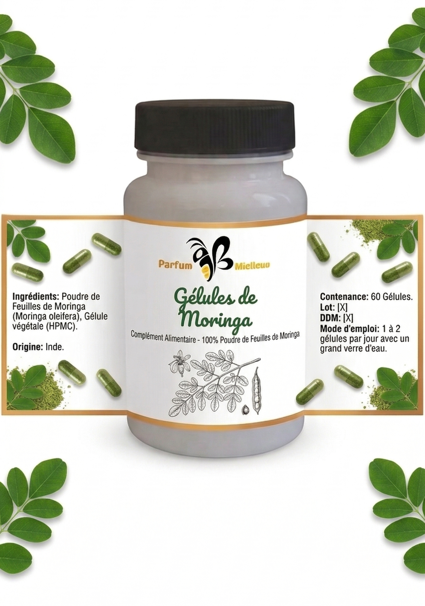 Gélules de Moringa Oleifera Pur – Super-aliment 100% Naturel | Parfum Mielleux